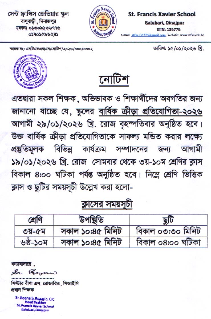 বার্ষিক ক্রীড়া প্রতিযোগীতার প্রস্তুতির জন্য বিদ্যালয়ের সময়সূচি