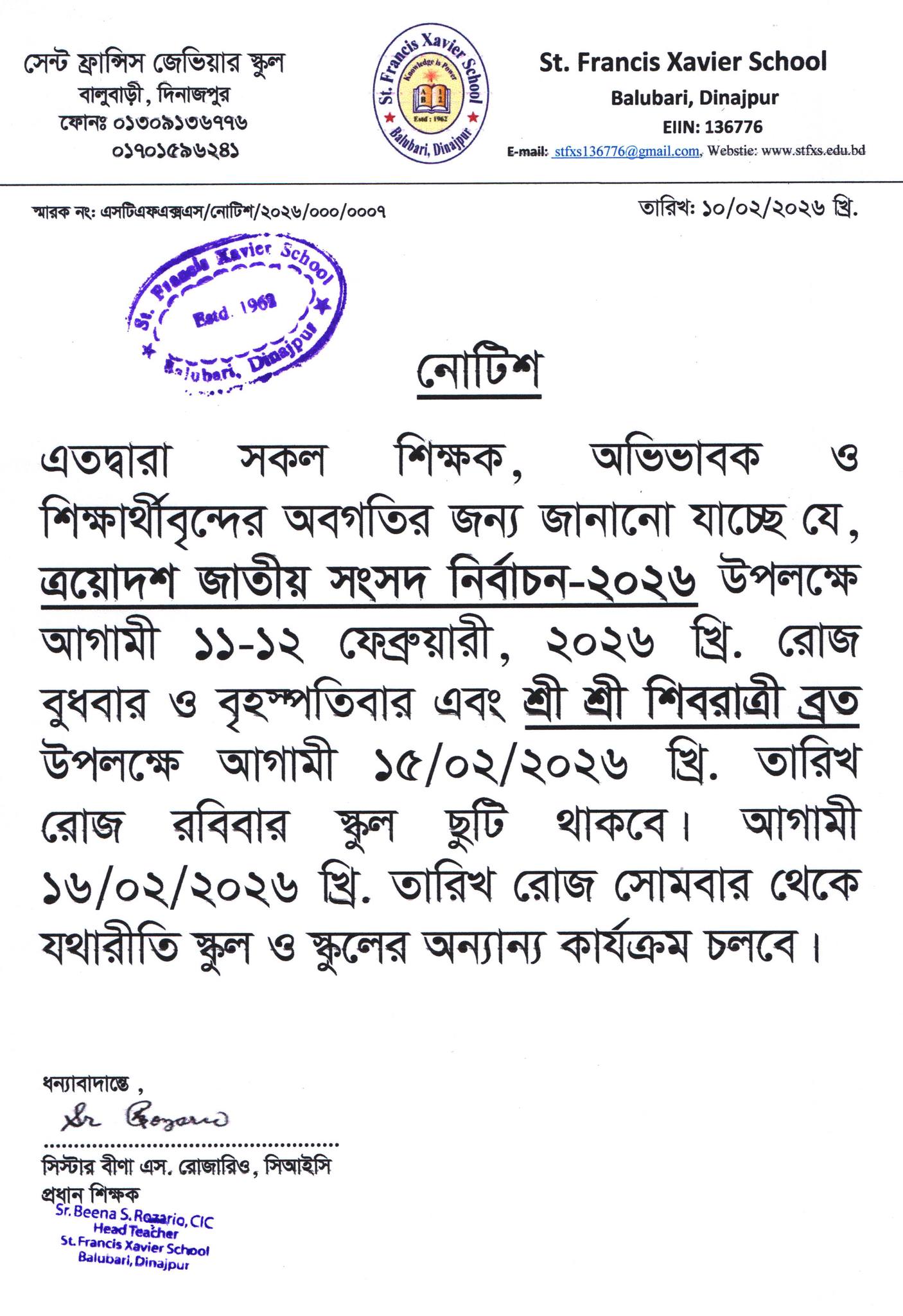 ছুটির নোটিশ